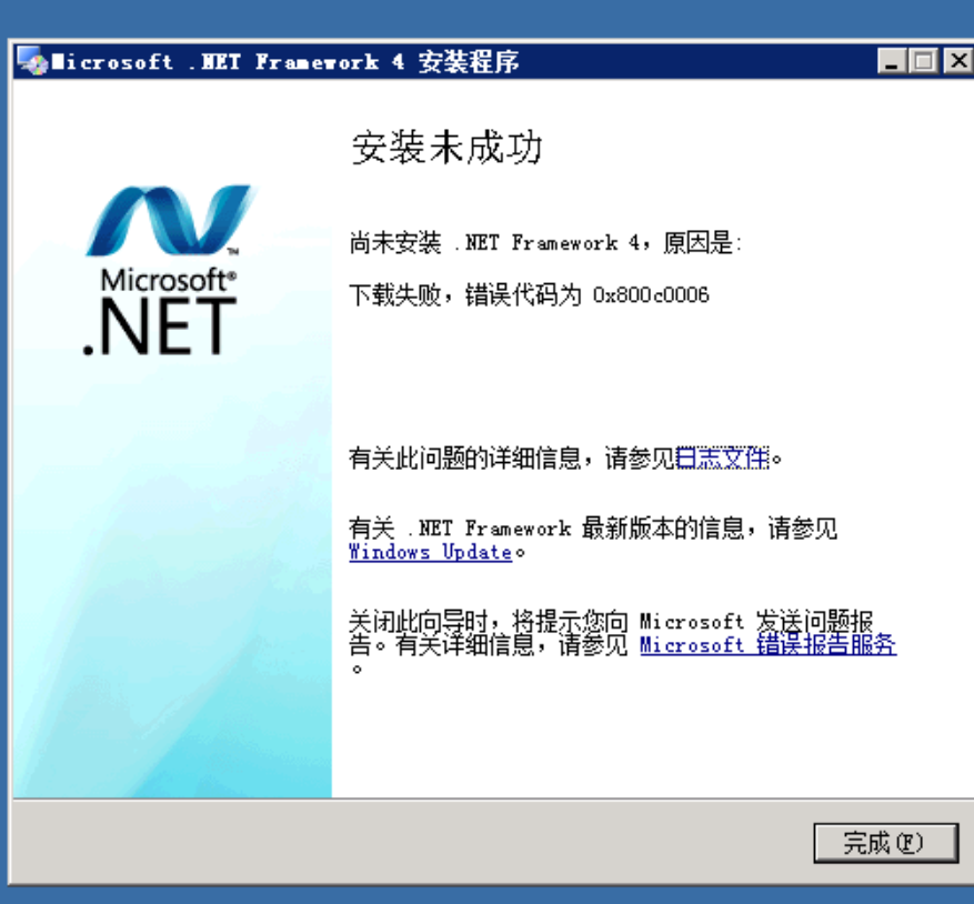 Windwos香港云服务器安装.NETFramework4报错下载失败,错误代码为0x8000006,具体如下图
