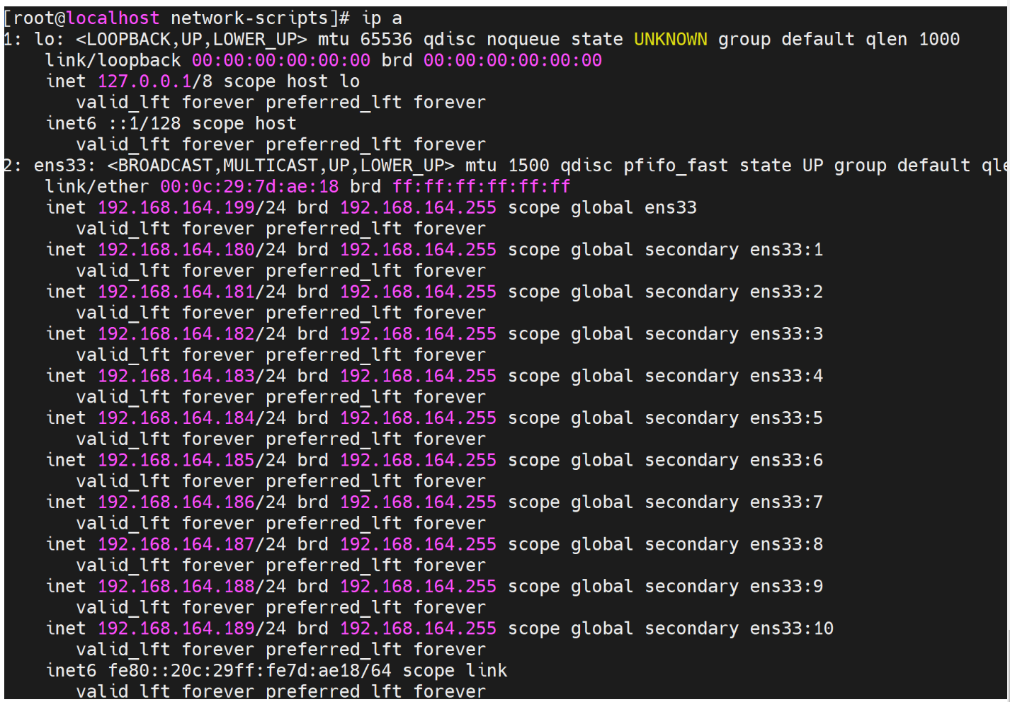 实验要求:为单网卡增加配置IP192.168.164.180-192.168.164.189