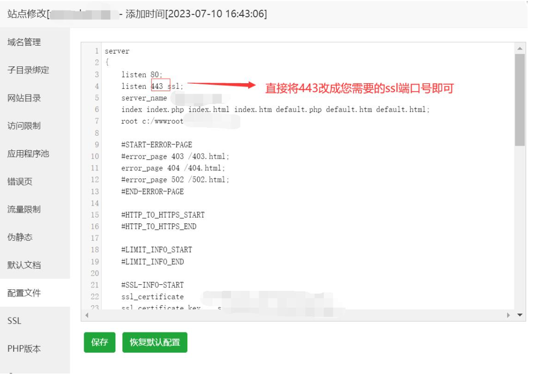 宝塔面板默认使用的 SSL 端口是 443,如果需要修改默认的 SSL 端口,可以按照以下步骤进行操作: