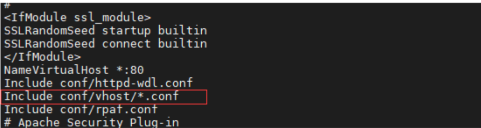 apache环境配置文件为httpd.conf (命令:vi httpd.conf)