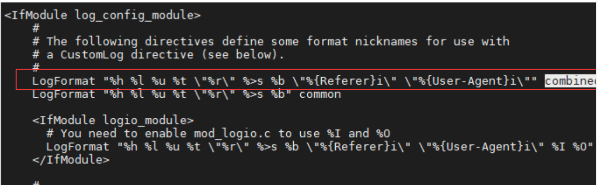 先按上述方式找到apache服务路径进入conf目录, 查看httpd.conf文件, 查看logFormat格式