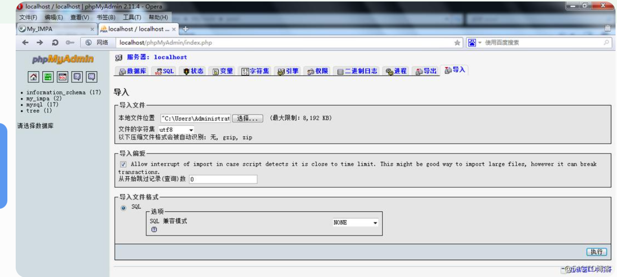 2. 导入的SQL文件大小有限制,如果文件过大可以分成多个文件逐个导入。