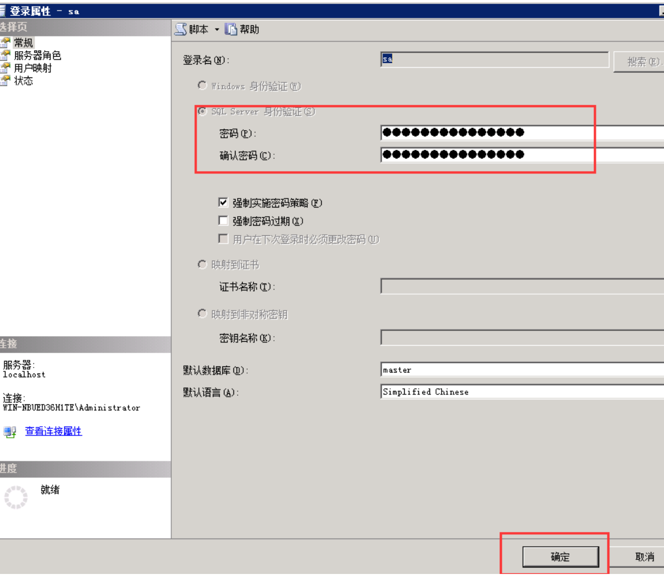 Windows系统的云服务器修改数据库sa的密码