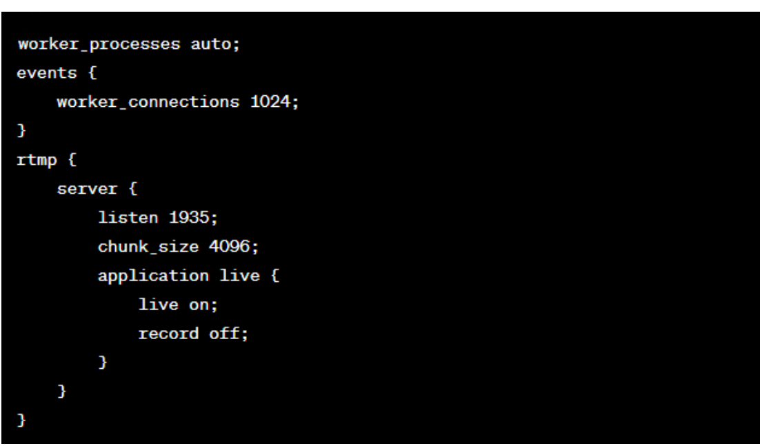 6. 配置Nginx-RTMP: 创建一个Nginx配置文件,用于配置RTMP服务器。
