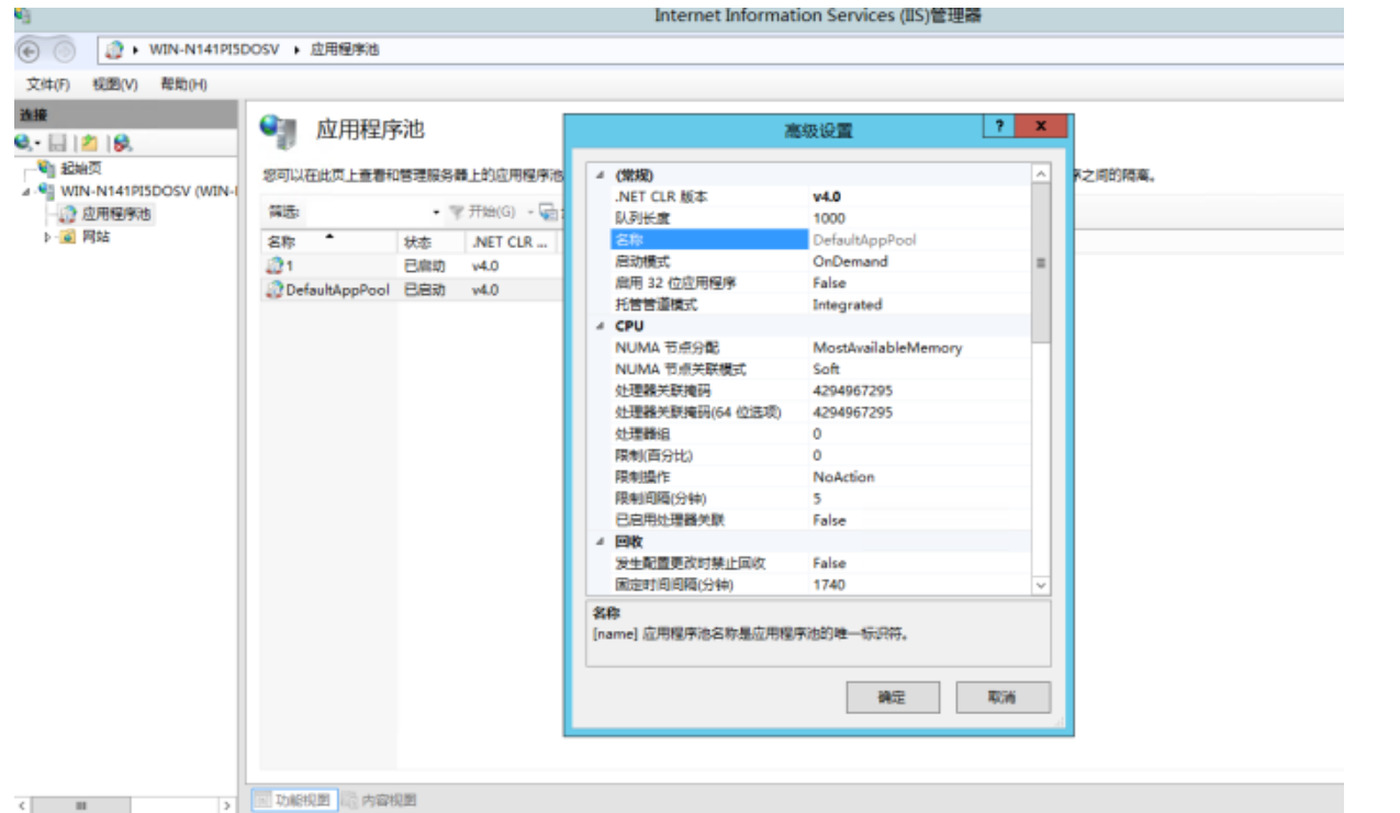 回收 > 固定时间间隔(分钟),设置为“0”。一个时间段(以分钟为单位),超过该时间后,应用程序池将回收。值为 0 意味着应用程序池不会按固定间隔回收。