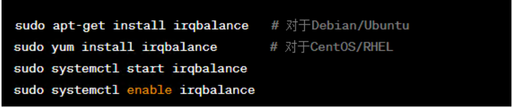 使用irqbalance: irqbalance是一个守护进程,可自动平衡IRQs。通常,它会将IRQs分散到不同的CPU核心上,以提高性能。你可以安装并启动它: