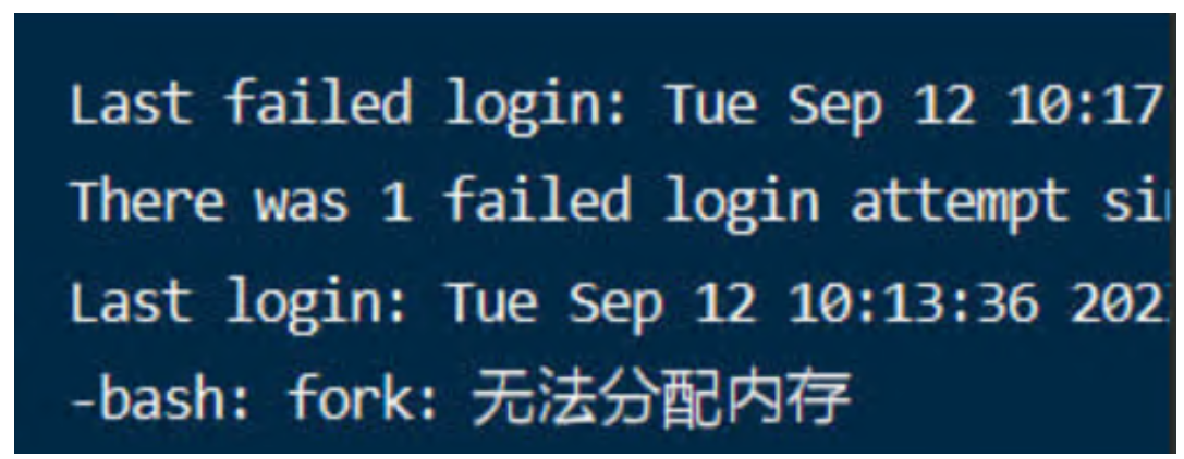 当ssh连接linux系统时,出现-bash:fork无法分配问题