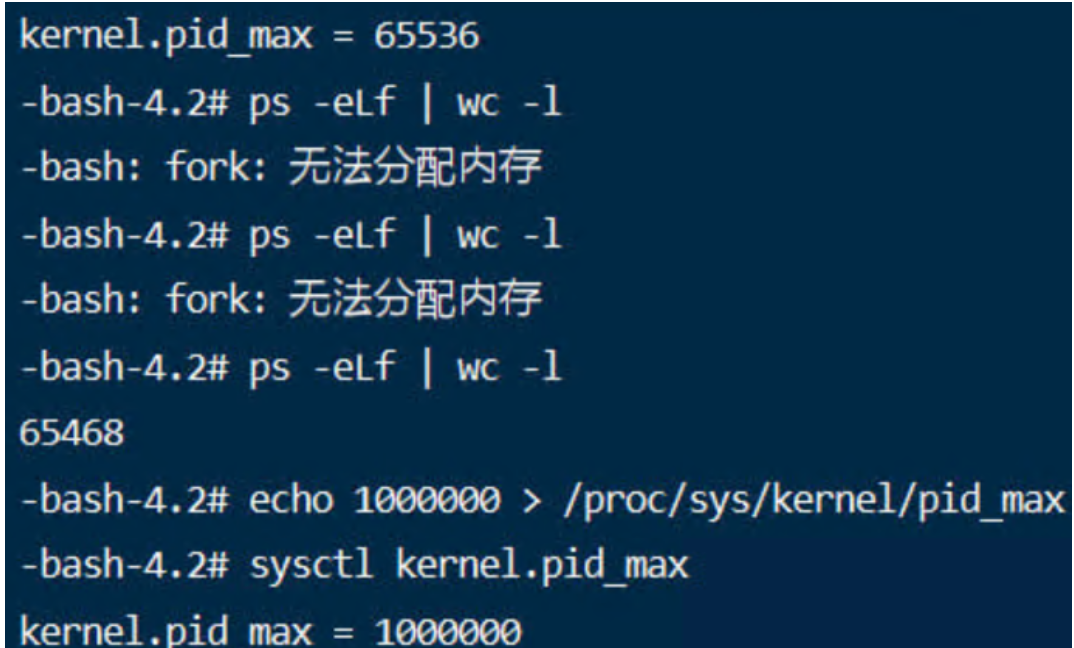 ①临时生效: 输入 echo 1000000 > /proc/sys/kernel/pid_max
