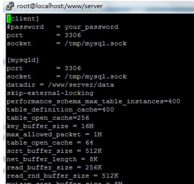 进入ssh 输入vi /etc/my.cnf 检查配置文件是否存在