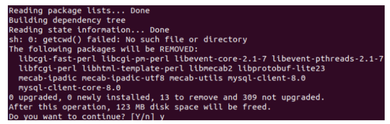 $ sudo rm -r /etc/mysql /var/lib/mysql