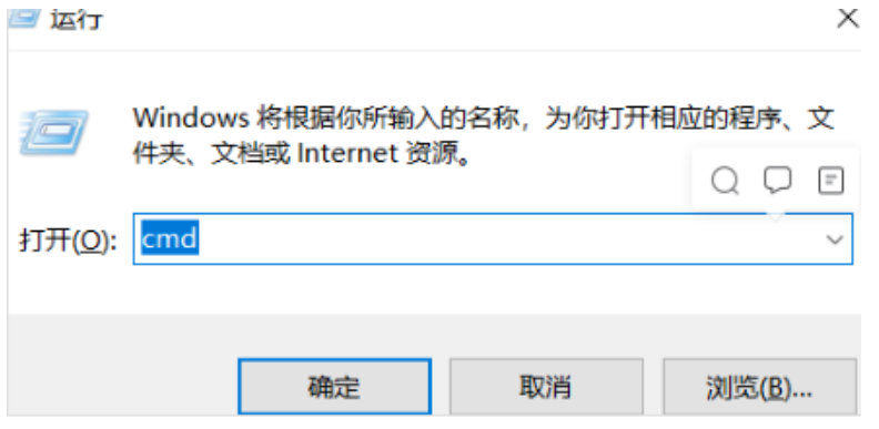1.win+r的方式,打卡运行框,输入cmd按下回车,打开终端。