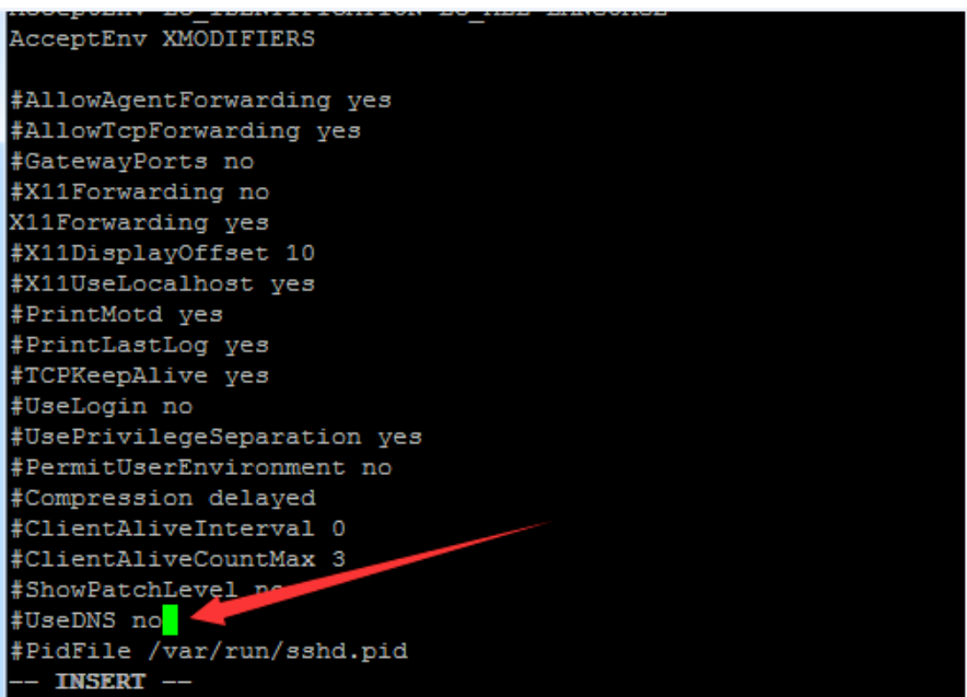 2、然后将UseDNS yes 改成 UseDNS no