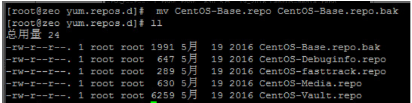 2.执行命令:mv CentOS-Base.repo CentOS-Base.repo.bak备份服务器原有的yum源文件