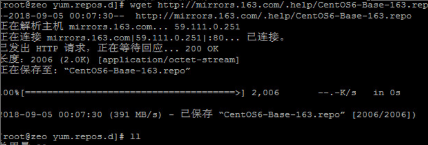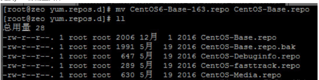 4.执行命令:mv CentOS6-Base-163.repo CentOS-Base.repo