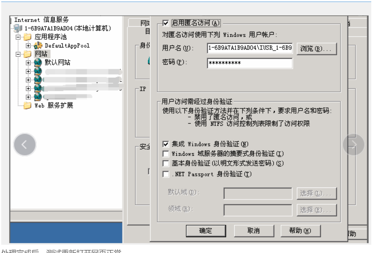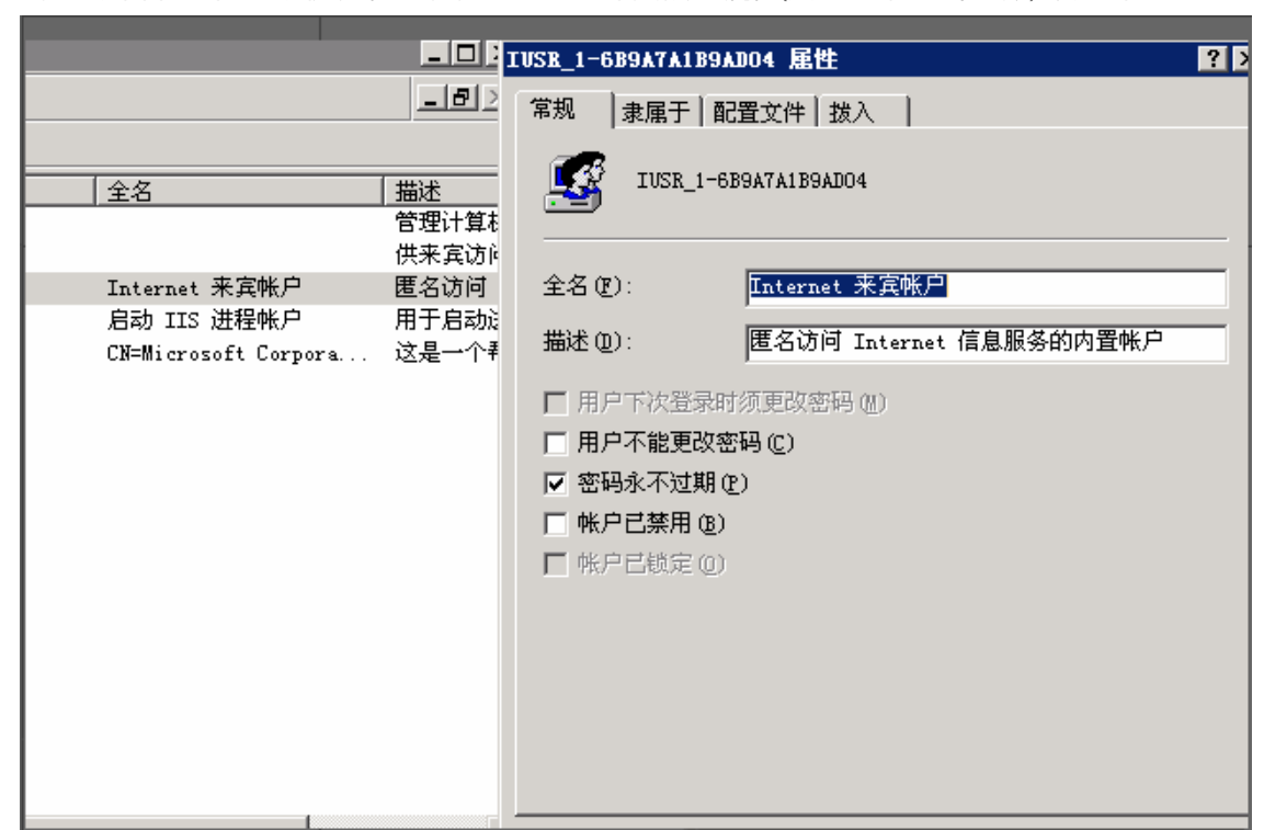 2.IIS上设置:网站属性-目录安全性-身份验证和访问控制(编辑)-启用匿名访问(浏览)-高级-立即查找-选择 Internet 来宾帐户(确认)-输入刚设置的密码(确认后再输入一次)。