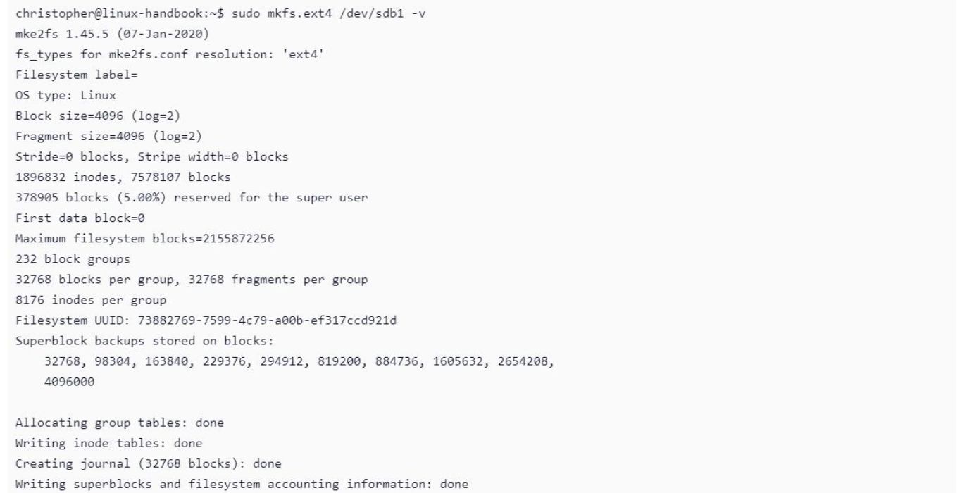 sudo mkfs -t ext4 /dev/sdb1